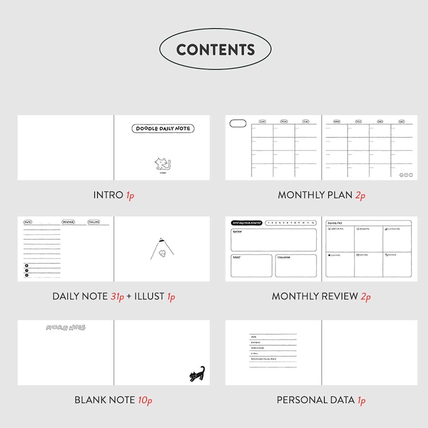 roztomilá záležitost od plánování přes každodenní poznámky, měsíční reflexi až po volné stránky na kreslení.