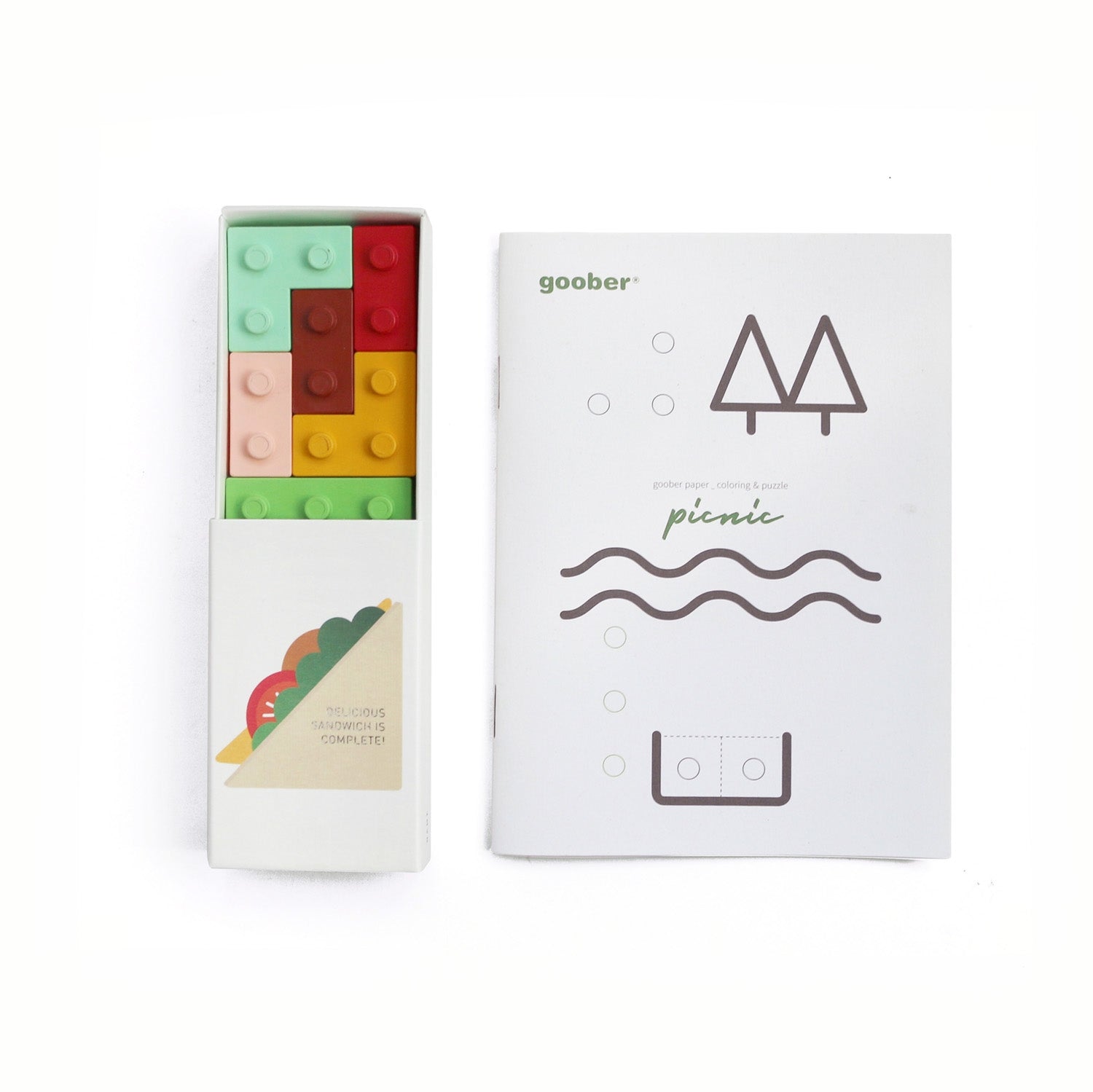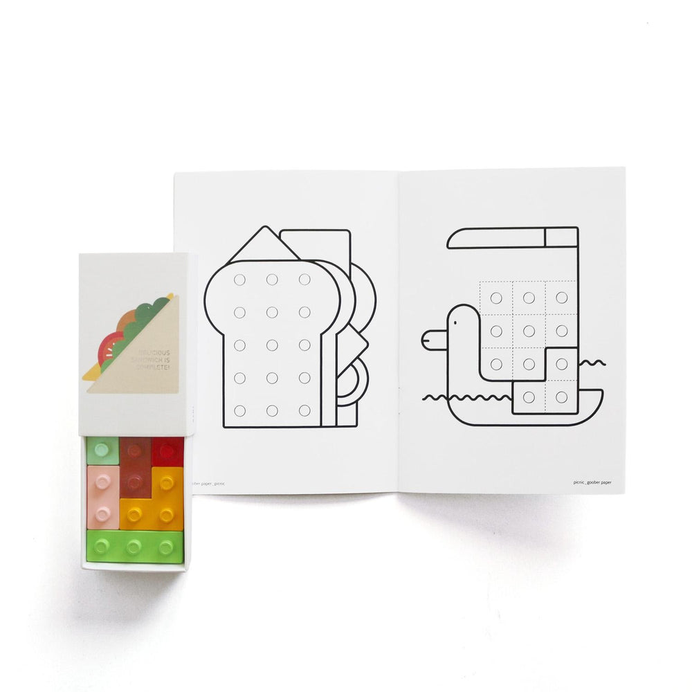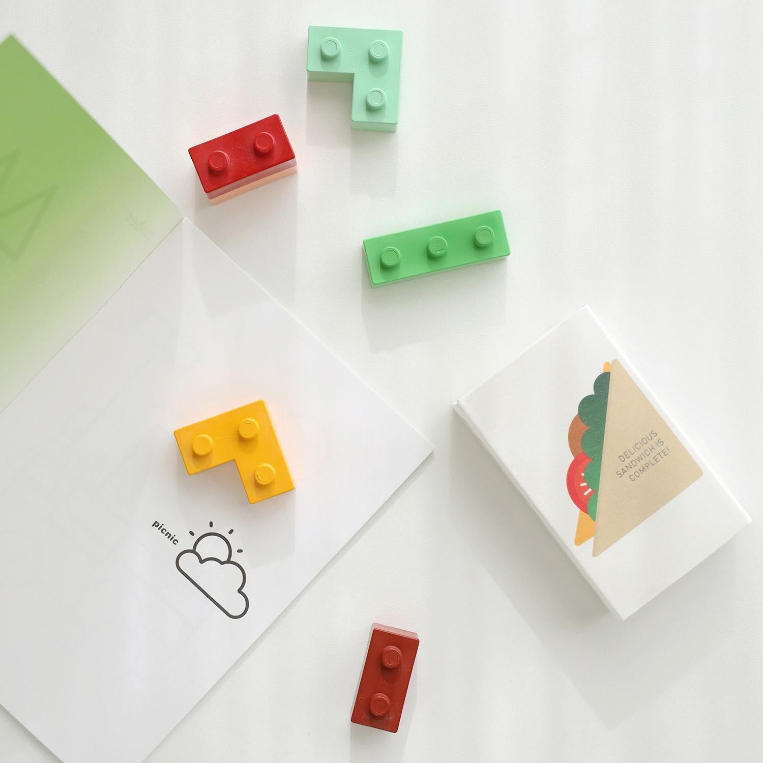 sada obsahuje pět kostiček, které lze skládat, spojovat jako puzzle a zároveň s nimi kreslit.
